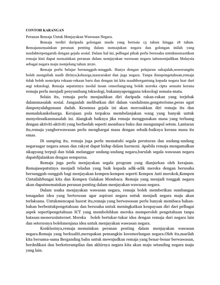 Contoh Karangan Bahasa Melayu Spm Peranan Remaja Dalam Membangunkan Dan Memajukan Negara Ini Docx Contoh Karangan Bahasa Melayu Spm Peranan Remaja Course Hero