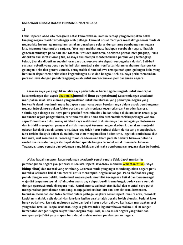 Karangan Remaja Dalam Pembangunan Negara Pdf